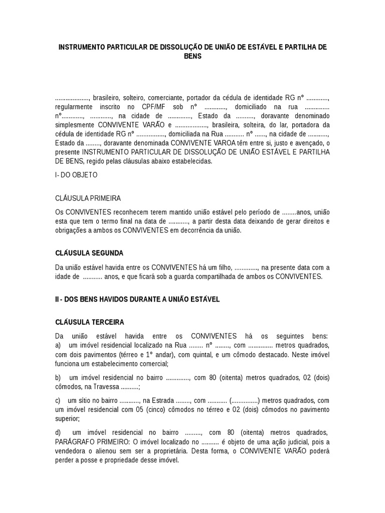 INSTRUMENTO PARTICULAR DE DISSOLUO DE UNIO DE ESTVEL E PARTILHA DE
