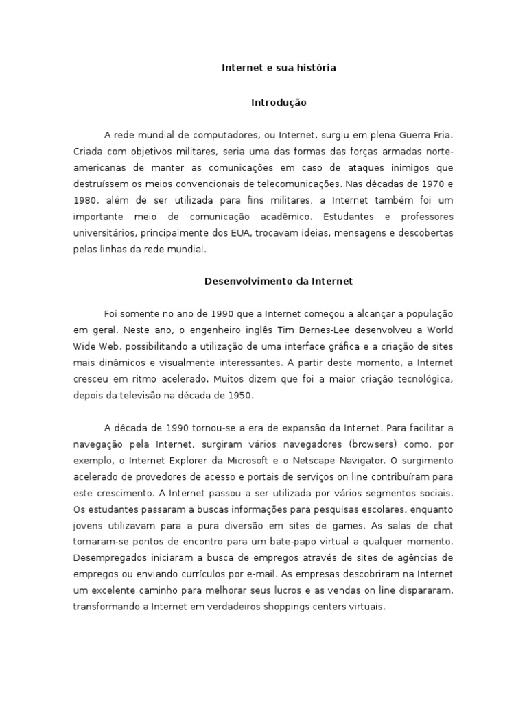 Nos dias atuais, impossvel pensar no mundo sem a Internet. Ela tomou