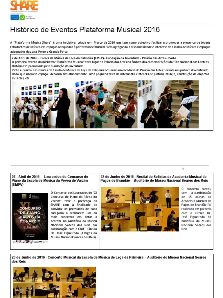 Histórico de Eventos Plataforma Musical 2016