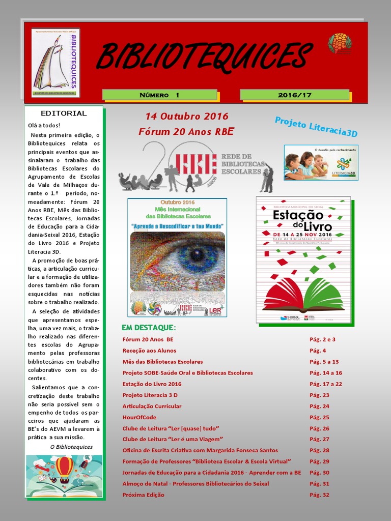 Outubro, ms das Bibliotecas Escolares, foi o ms escolhido para assinalar o 20. aniversrio da Rede de Bibliotecas Escolares.
