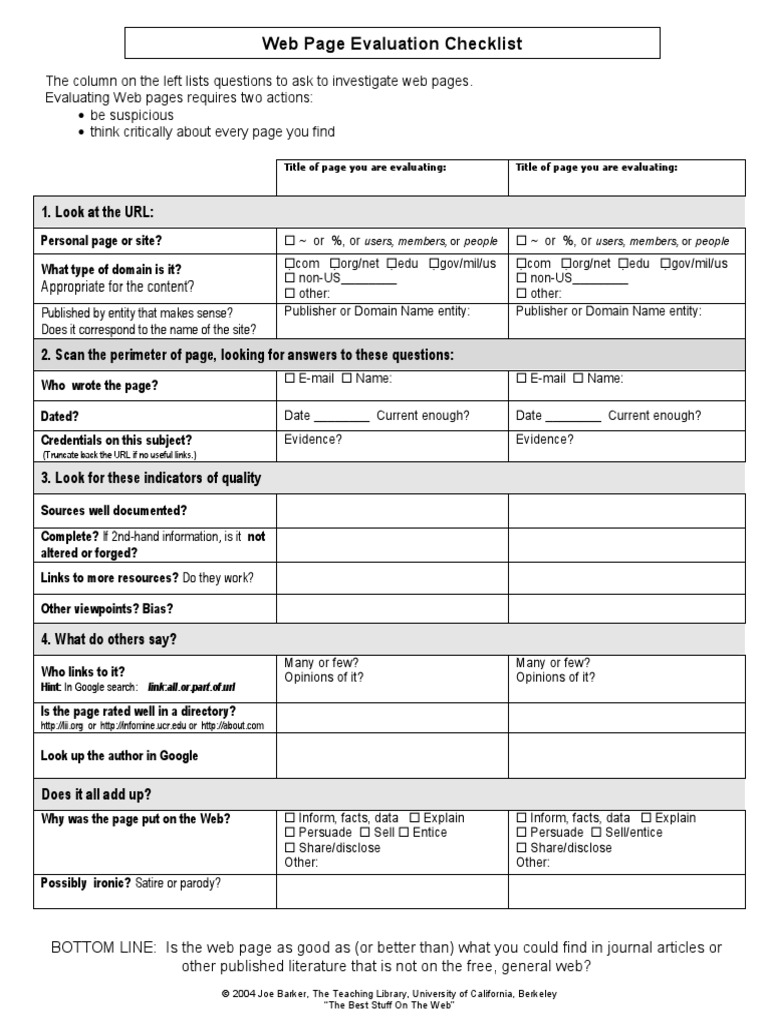 BOTTOM LINE: Is the web page as good as (or better than) what you could find in journal articles or