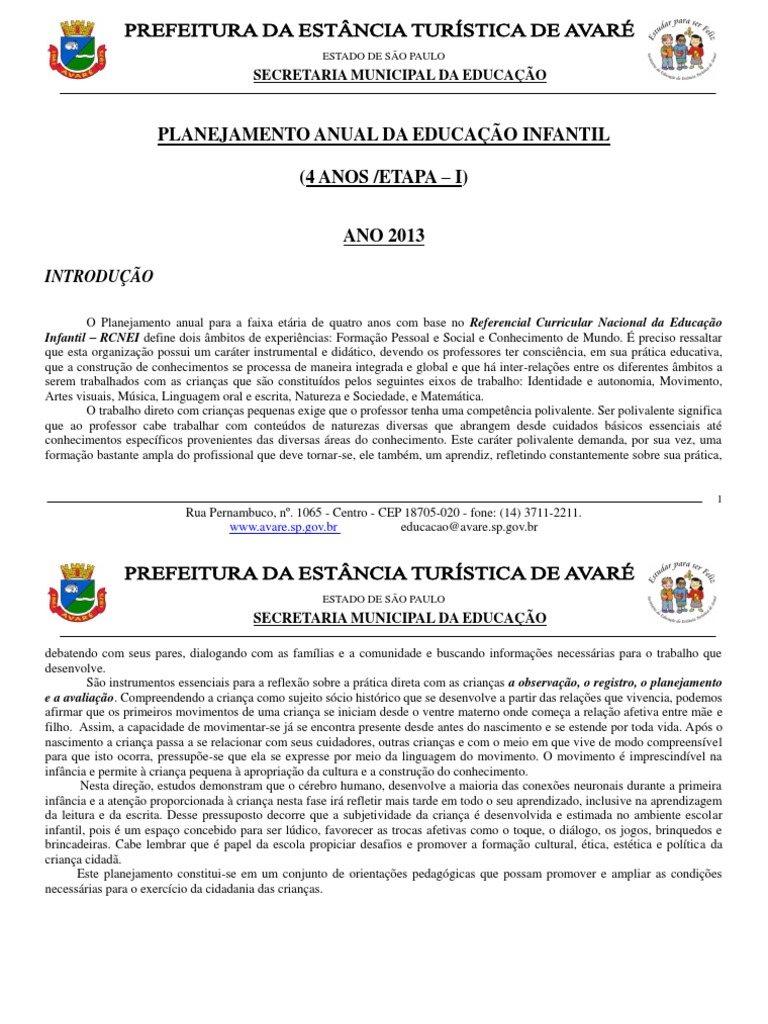 O Planejamento anual para a faixa etria de quatro anos com base no Referencial Curricular Nacional da Educao