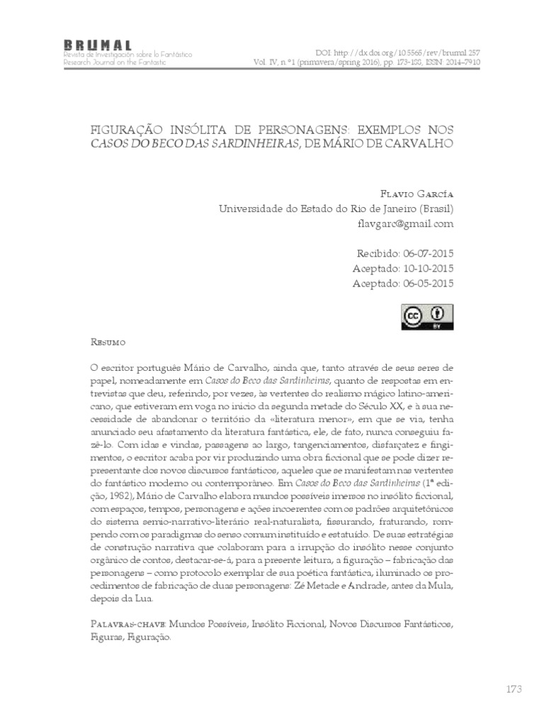 Research Journal on the Fantastic Vol. IV, n.1 (primavera/spring 2016), pp. 173-188, ISSN: 20147910