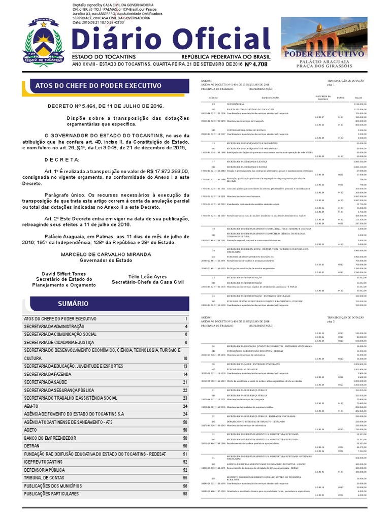 Ano XXVIII - Estado do Tocantins, quarta-feira, 21 de setembro de 2016 DIRIO OFICIAL No 4.708 55