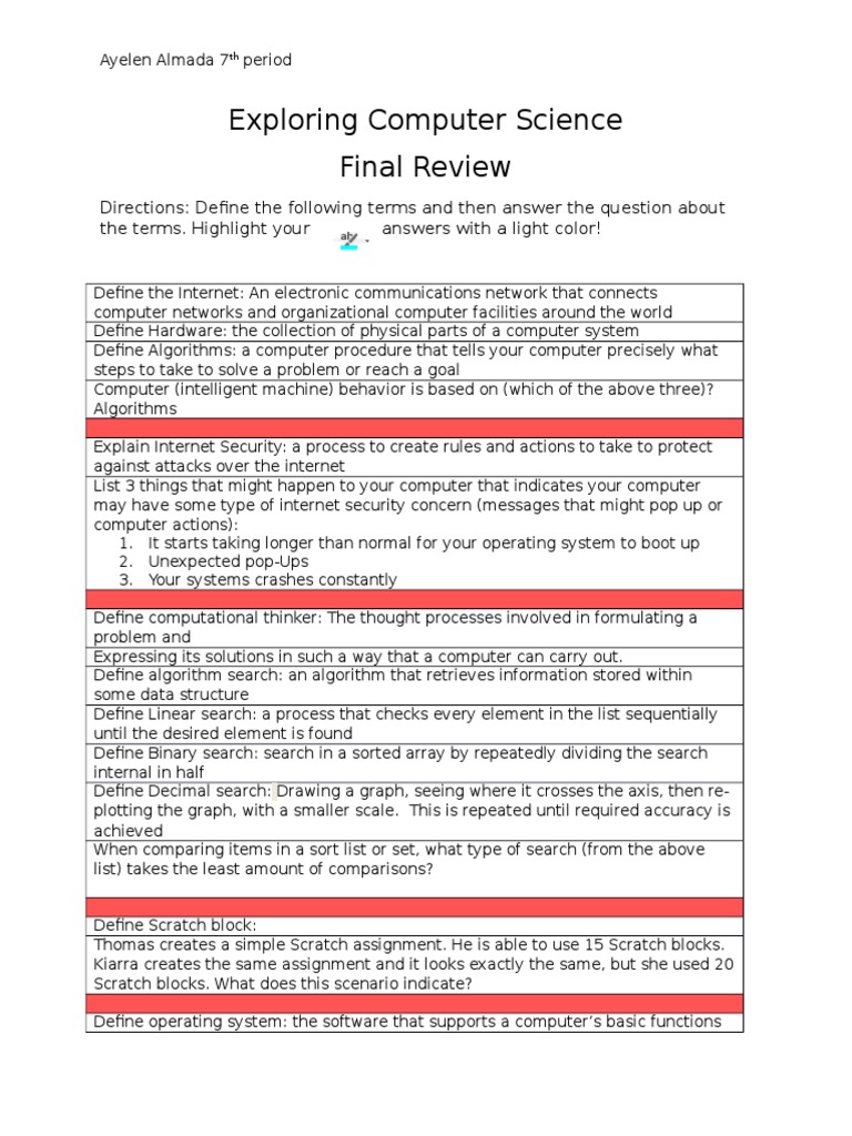 the terms. Highlight your answers with a light color!