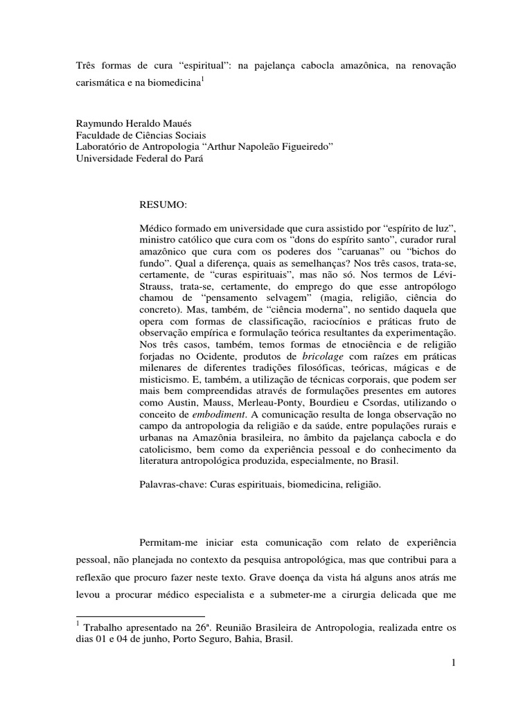 Palavras-chave: Curas espirituais, biomedicina, religio.