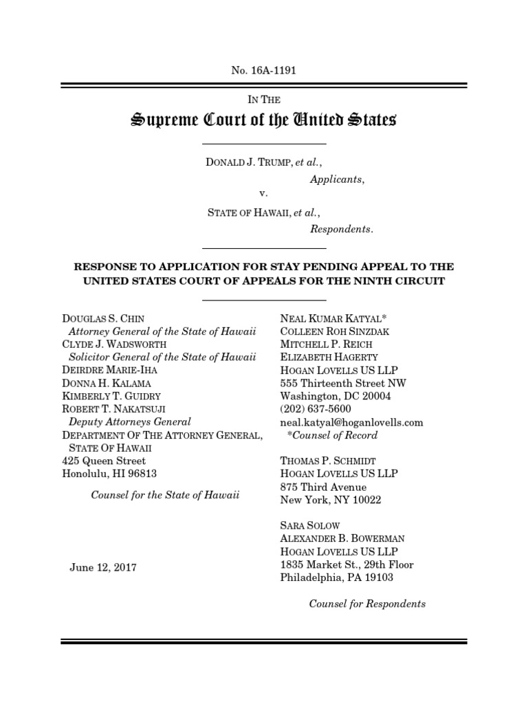 Trump V Hawaii Response