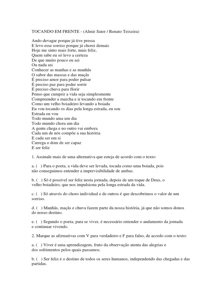 a. ( ) Para o poeta, a vida deve ser levada, tocada como uma boiada, pois