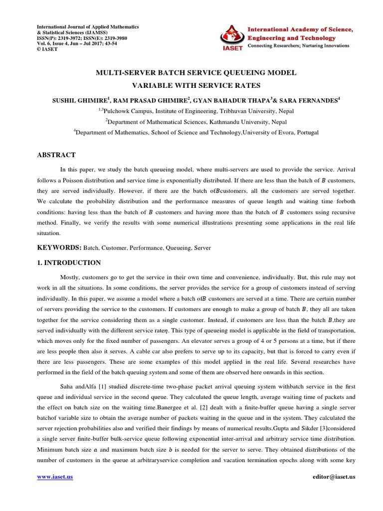 1. Saha, S &Alfa, A. S. (2008). Selecting batch size in discrete-time two-phase queuing system. Mathematical and
