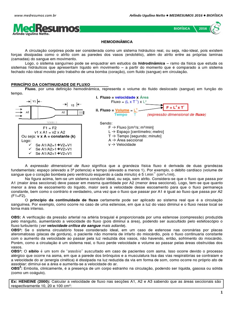 Logo, o sistema sanguneo pode se enquadrar em estudos da hidrodinmica ramo da fsica que estuda os