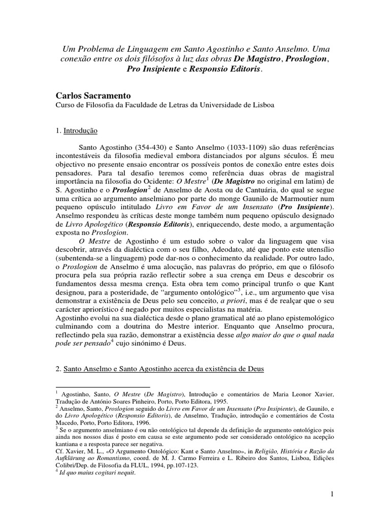 conexo entre os dois filsofos luz das obras De Magistro, Proslogion,