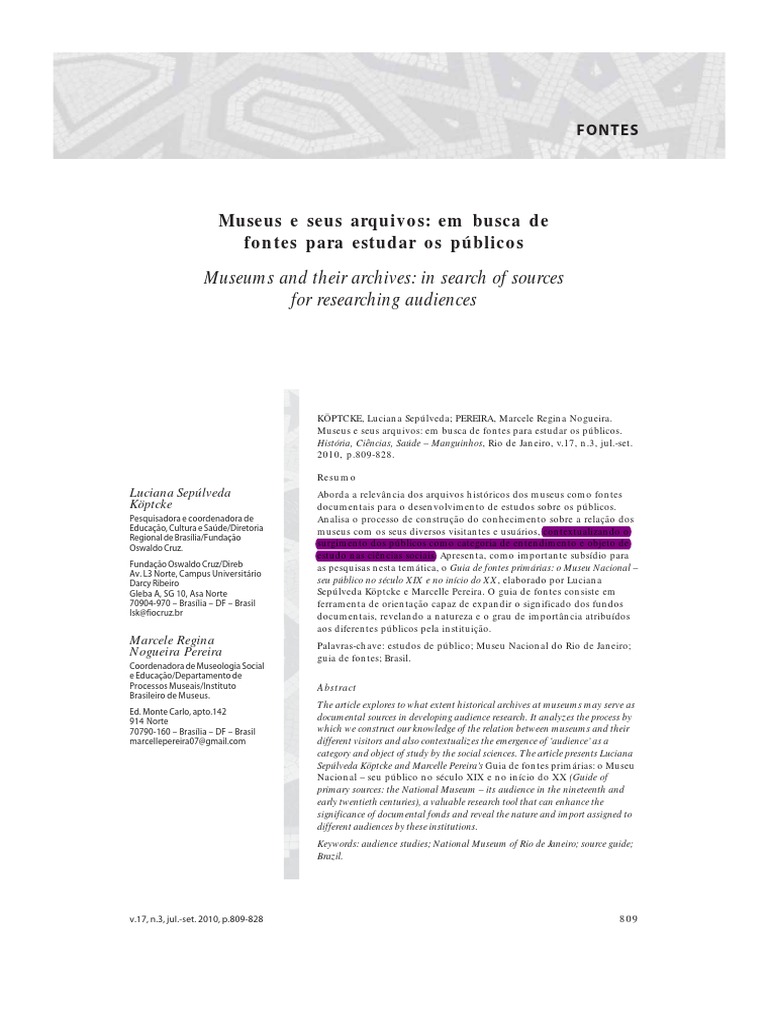 Seplveda Kptcke and Marcelle Pereiras Guia de fontes primrias: o Museu