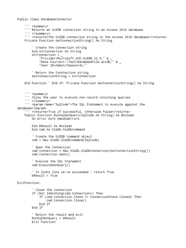 End Class ' End of: Public Class DatabaseConnector