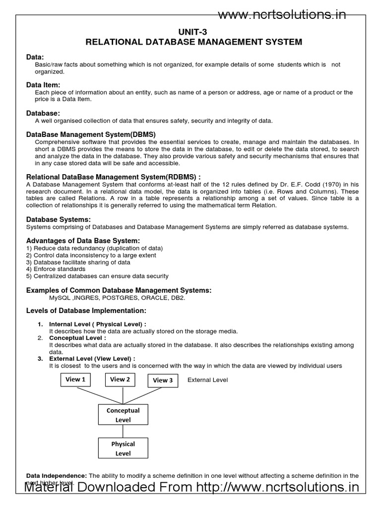 1. Physical Data Independence: It refers to the ability to modify the scheme followed at the physical level without affecting the scheme followed at the conceptual level.