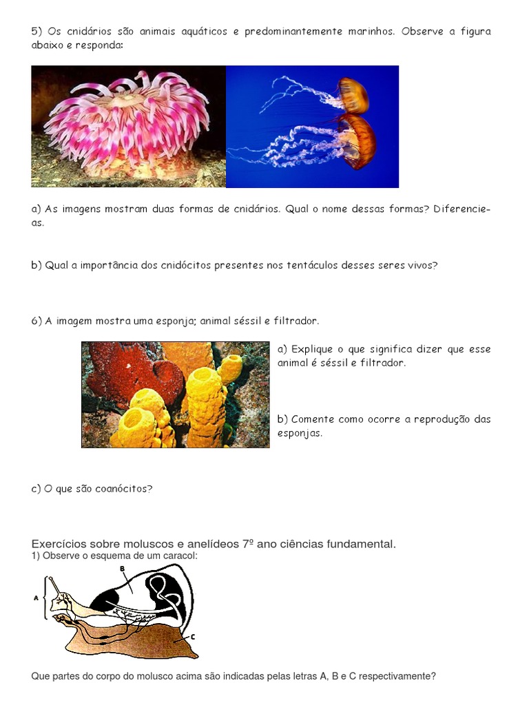 Exerccios sobre moluscos e aneldeos 7 ano cincias fundamental.