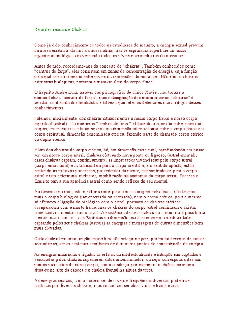 Falemos, inicialmente, dos chakras situados entre o nosso corpo fsico e nosso corpo
