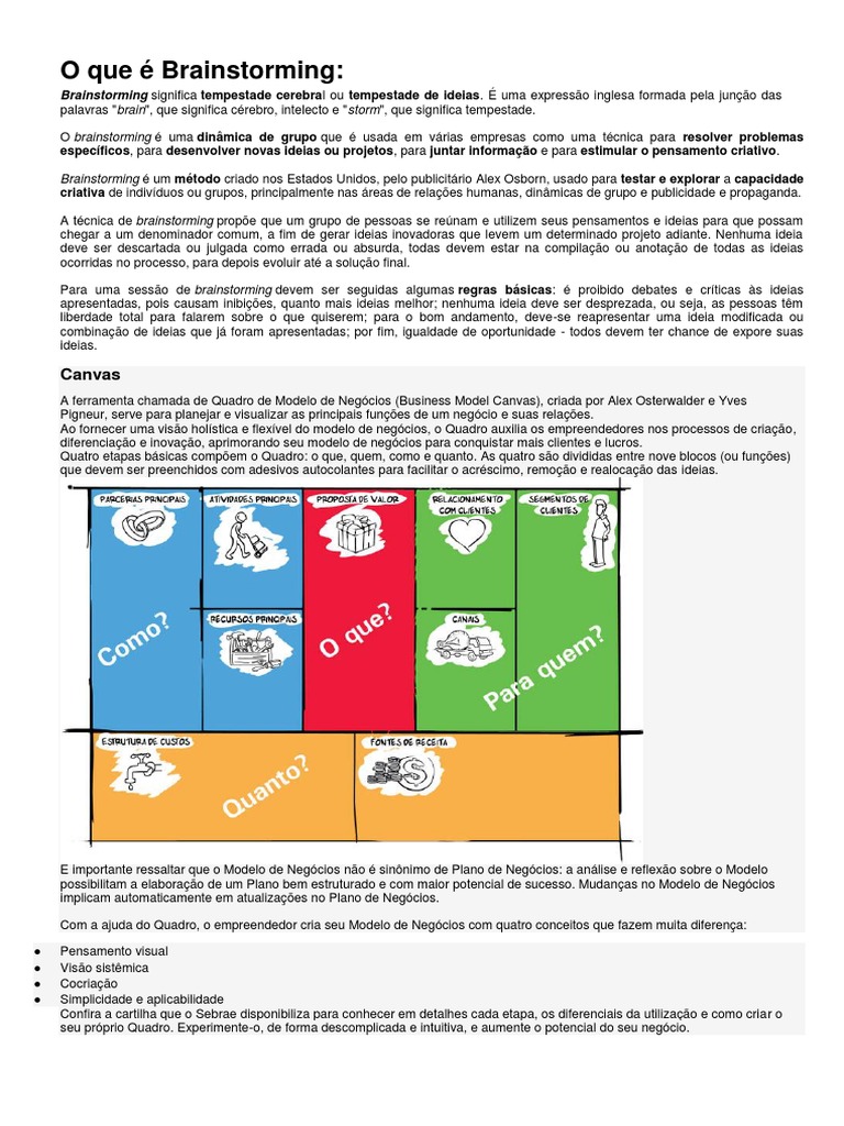 O brainstorming uma dinmica de grupo que usada em vrias empresas como uma tcnica para resolver problemas