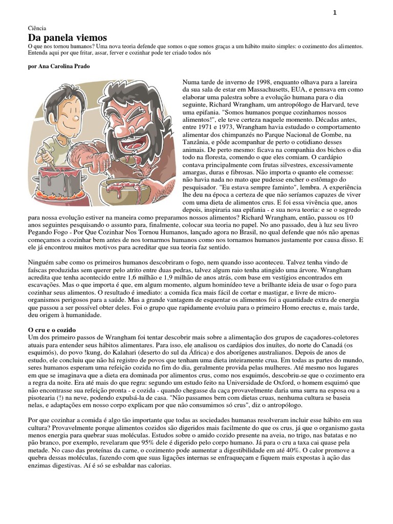 nelas, e adaptaes em nosso corpo explicam por que no consumimos s crus", diz o antroplogo.