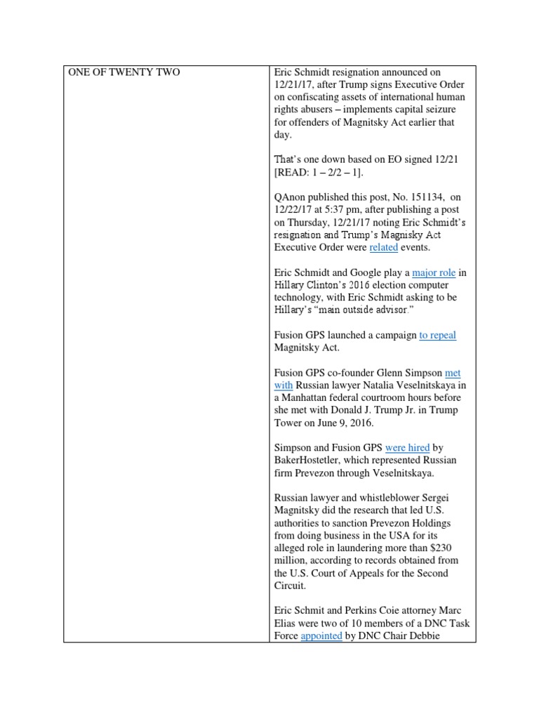 This QAnon post, No. 151134, is a timeline