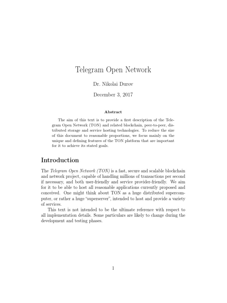 The Telegram Open Network (TON) is a fast, secure and scalable blockchain