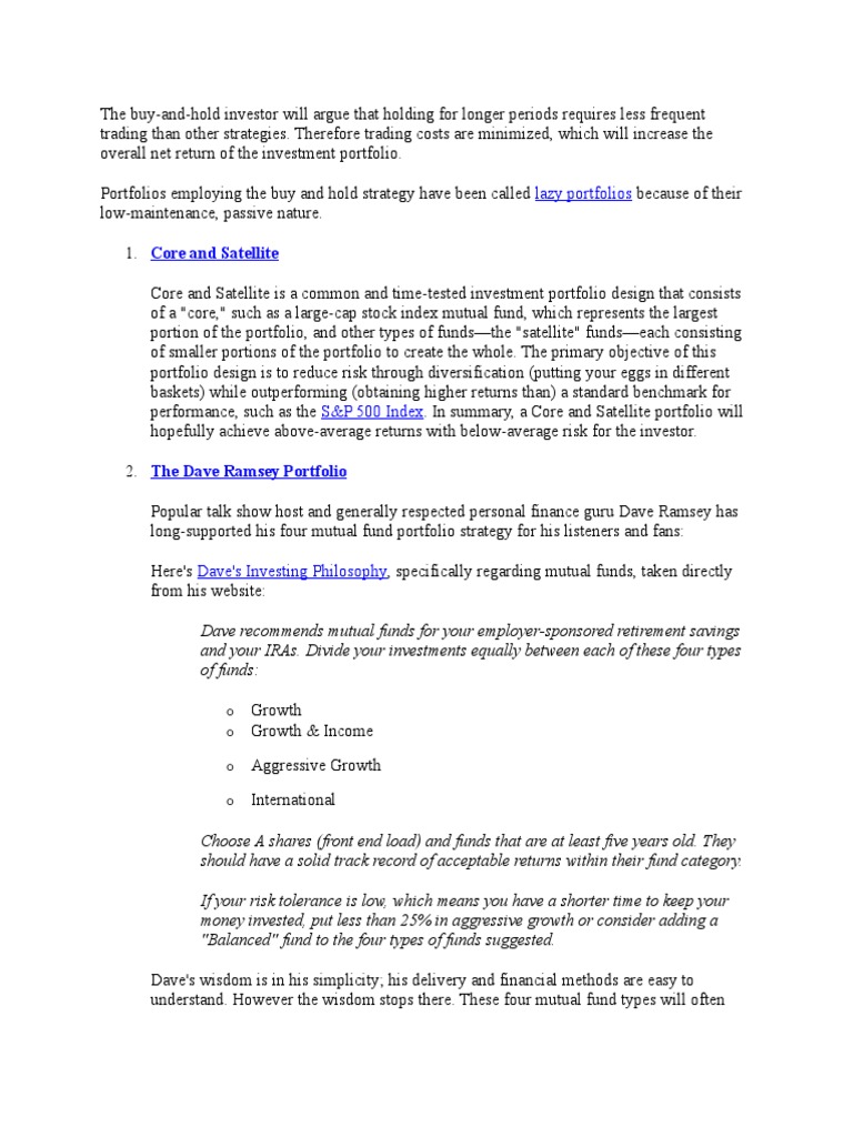 Portfolios employing the buy and hold strategy have been called lazy portfolios because of their