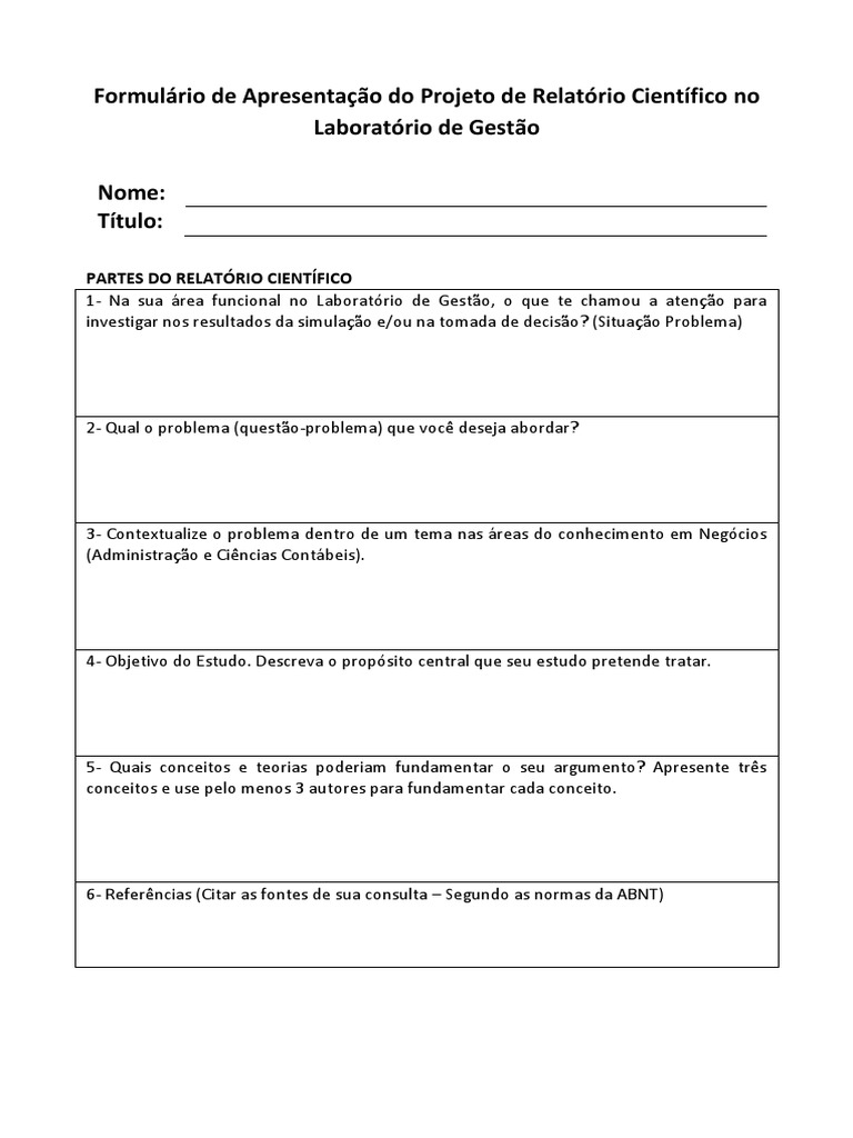 Formulário de Apresentação do Projeto de Relatório Científico no