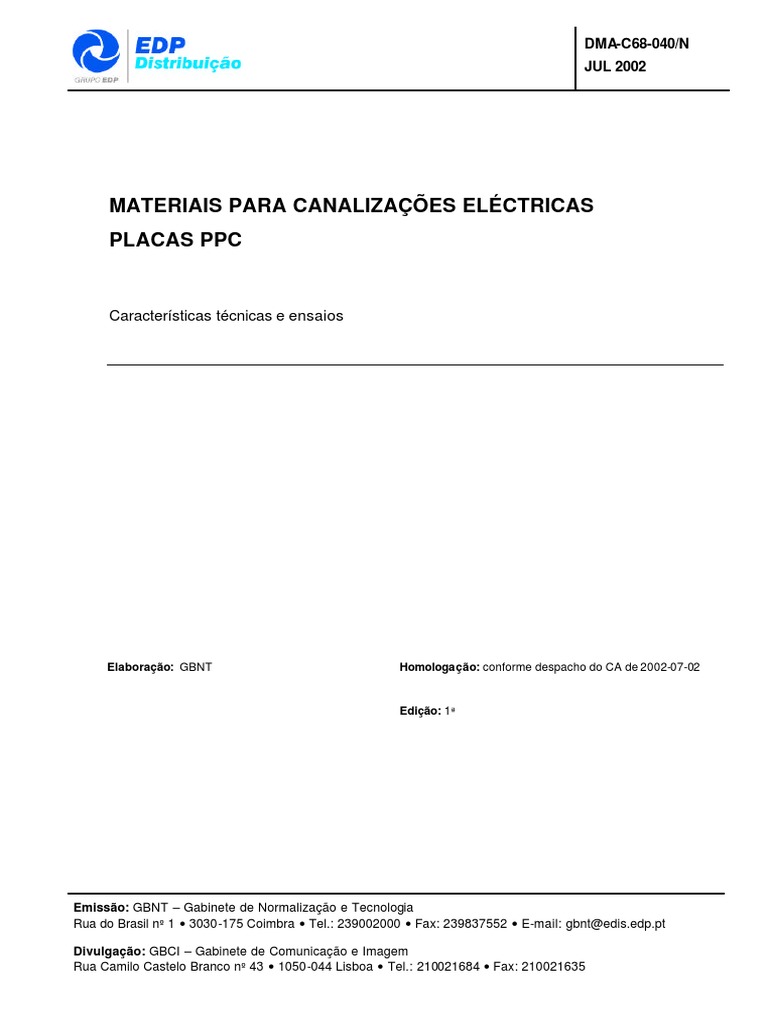 Emissão: GBNT – Gabinete de Normalização e Tecnologia Rua do Brasil nº 1 3030-175 Coimbra Tel.: 239002000 Fax: 239837552 E-mail: gbnt@edis.edp.pt