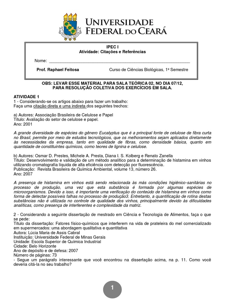 - A atividade não consiste em copiar citações que foram feitas em algumas obras, mas fazer as suas