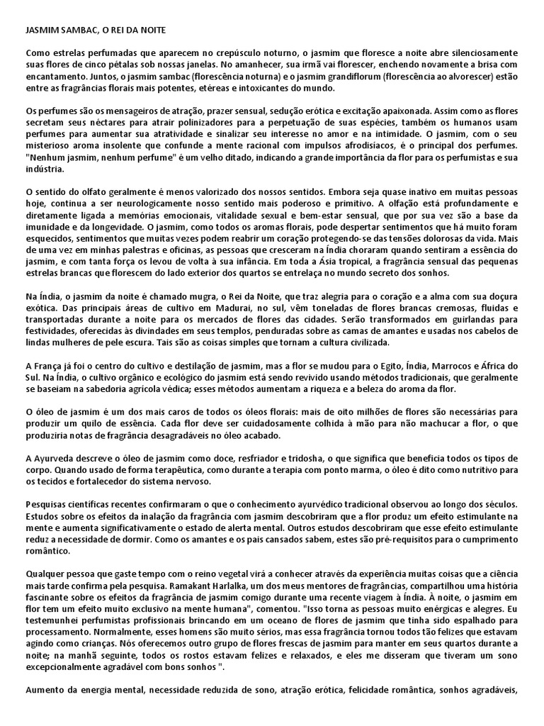 perfumes para aumentar sua atratividade e sinalizar seu interesse no amor e na intimidade. O jasmim, com o seu