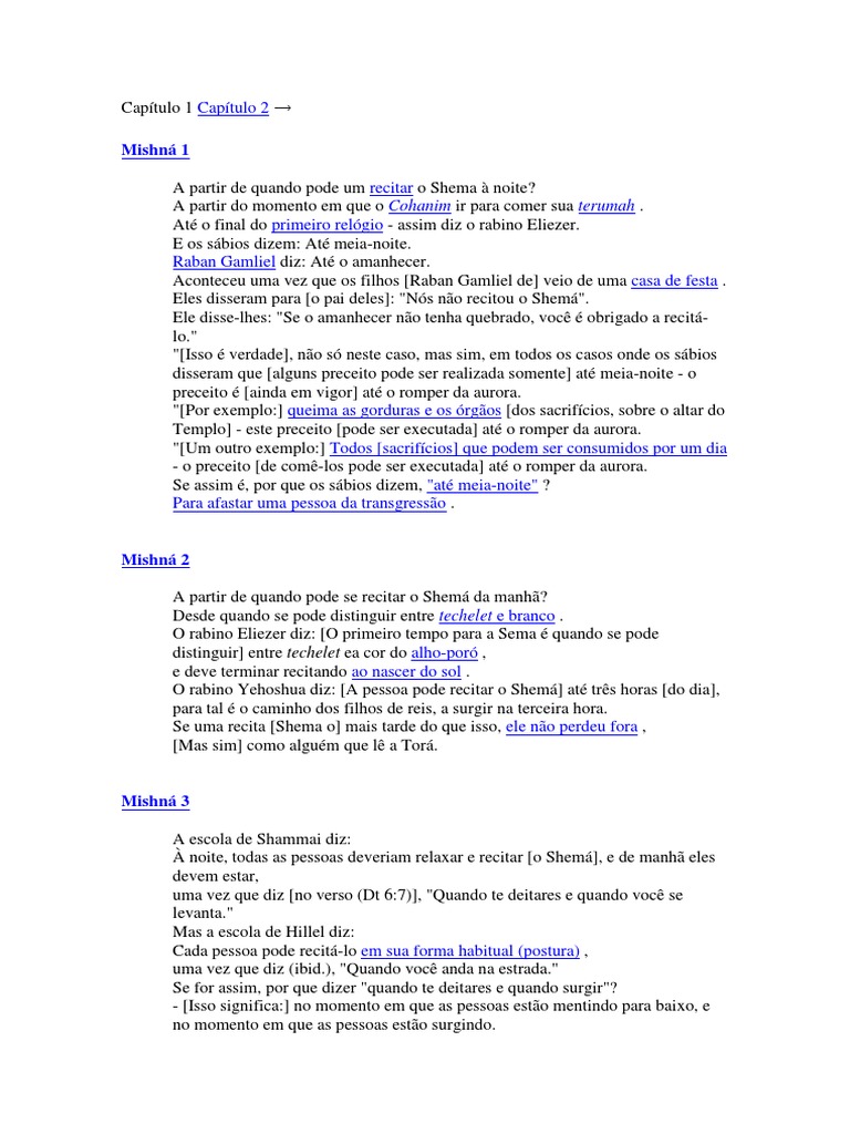 Neste mishná, discute quando o Shacharit (manhã), Minchá (da tarde), Ma'ariv (à noite)
