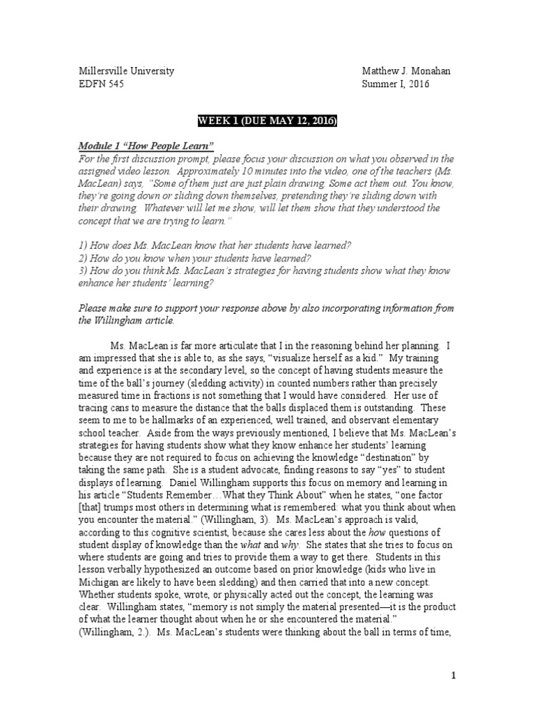 you encounter the material.” (Willingham, 3). Ms. MacLean’s approach is valid,