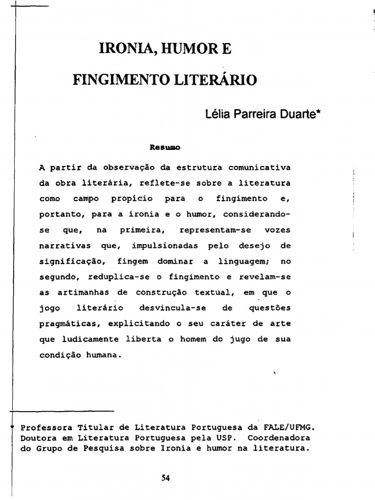 IRONIA, HUMOR E FINGIMENTO LITERÁRIO