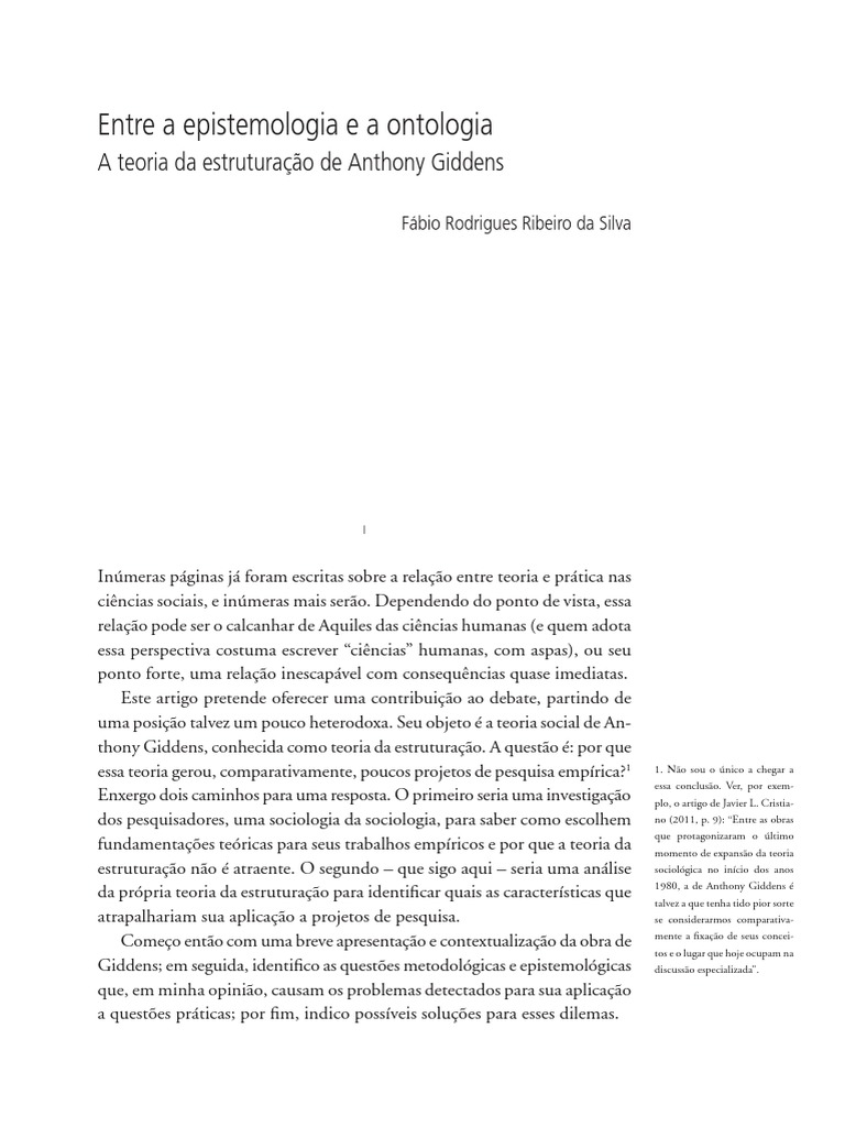 Giddens; em seguida, identifico as questões metodológicas e epistemológicas discussão especializada”.