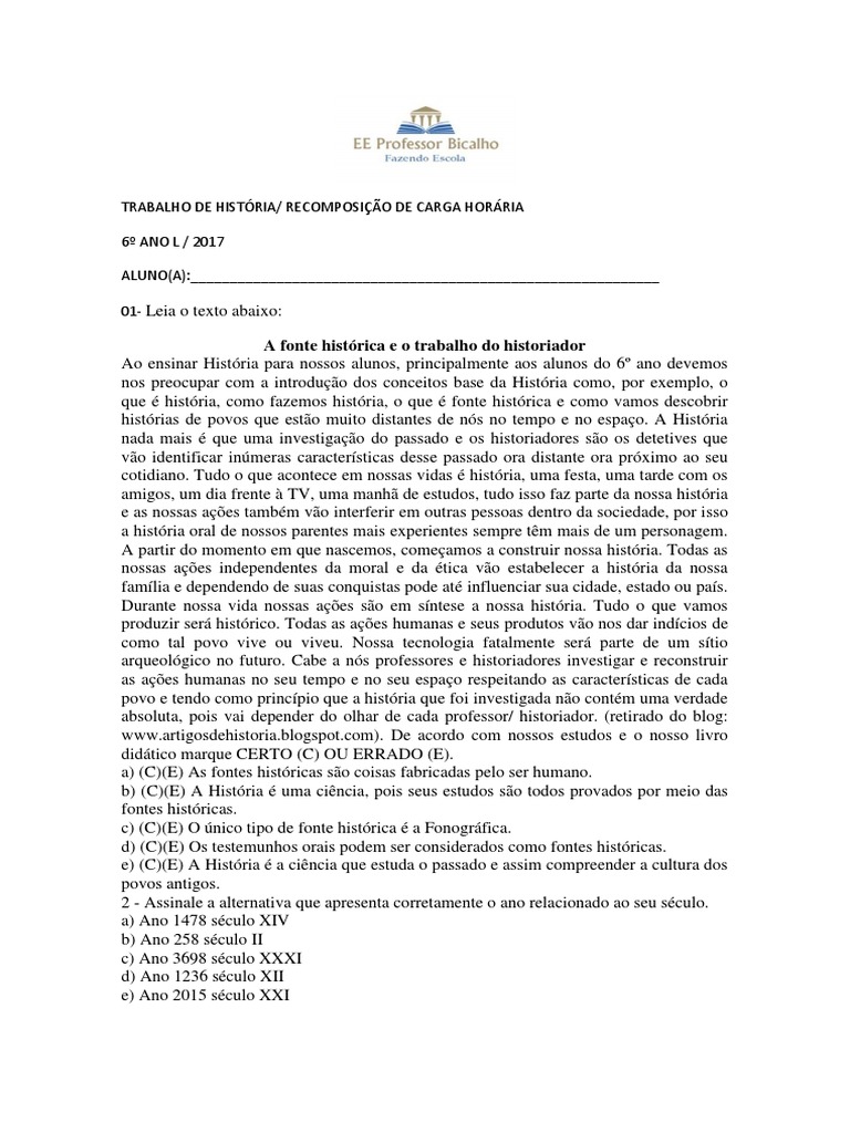 De acordo com o texto acima e as nossas aulas responda as seguintes questões: