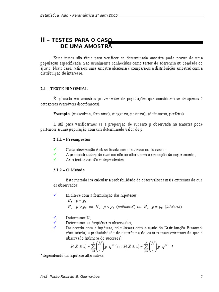 De acordo com a hipótese, calculamos com a ajuda da Distribuição Binomial