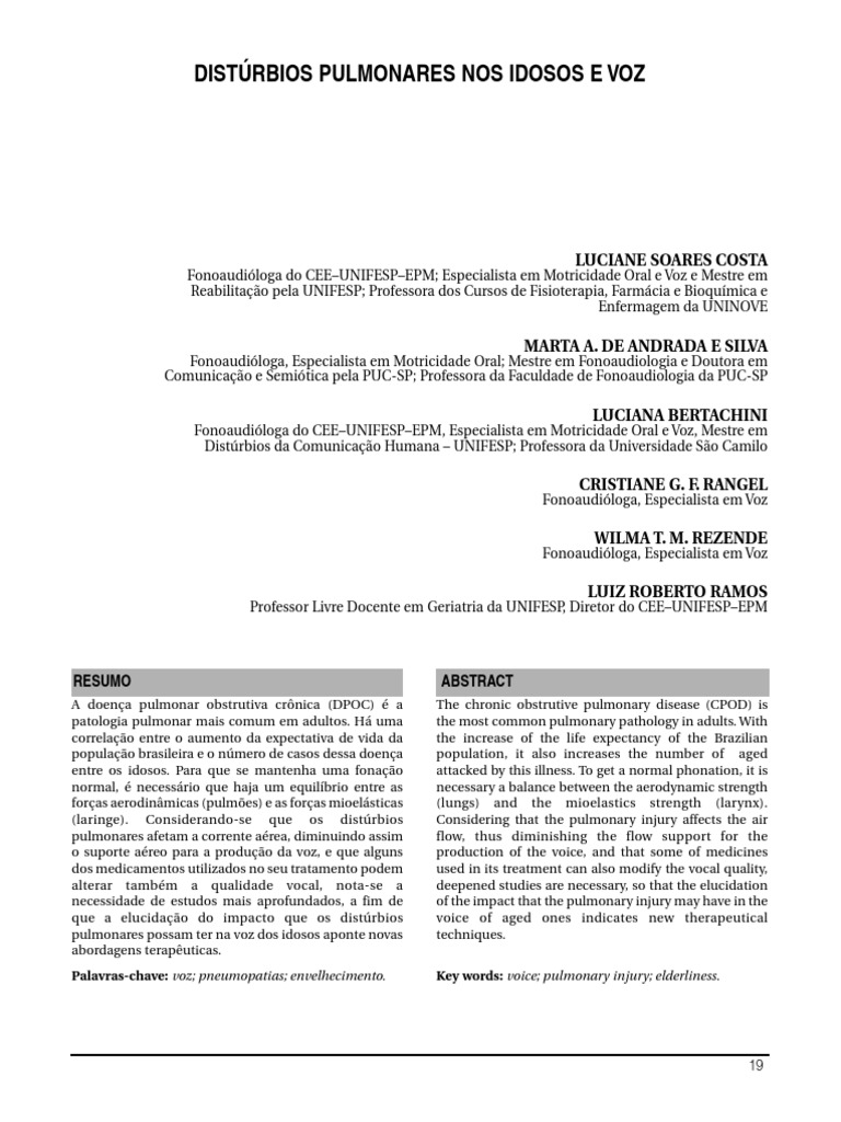 Palavras-chave: voz; pneumopatias; envelhecimento. Key words: voice; pulmonary injury; elderliness.