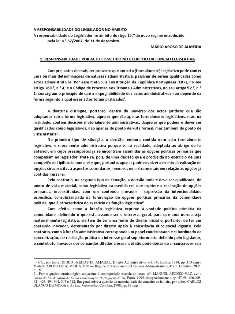 6 - Cfr. RUI MEDEIROS, "A responsabilidade civil pelo ilícito legislativo no quadro da reforma do Decreto-Lei n.° 48