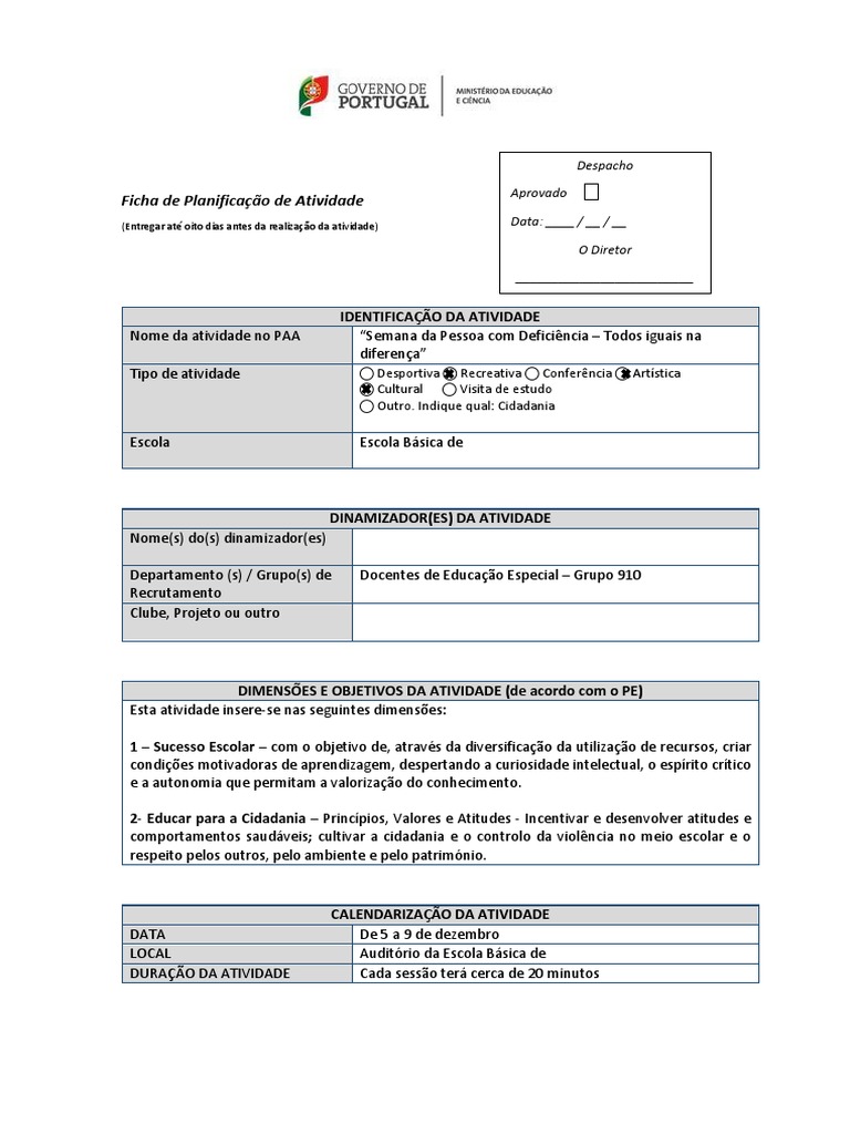 Nome da atividade no PAA “Semana da Pessoa com Deficiência – Todos iguais na