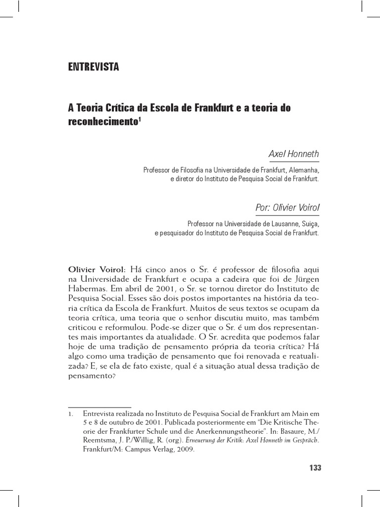 1. Entrevista realizada no Instituto de Pesquisa Social de Frankfurt am Main em