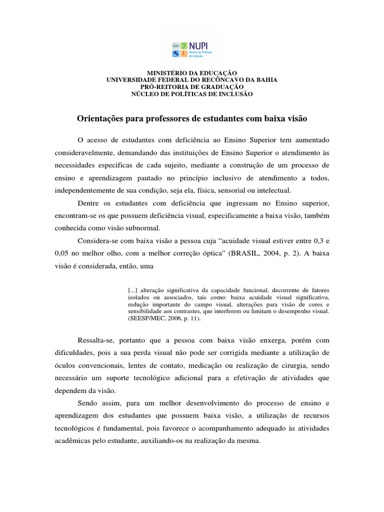 com baixa visão matriculados na UFRB, visando favorecer um ensino de qualidade, que