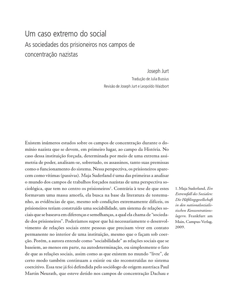 ciológica, que tem no centro os prisioneiros1. Contrária à tese de que estes 1.Maja Suderland, Ein