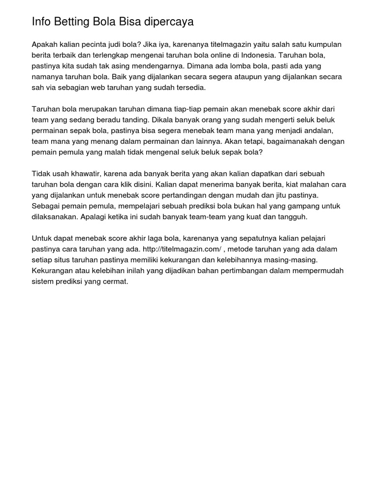 berita terbaik dan terlengkap mengenai taruhan bola online di Indonesia. Taruhan bola,