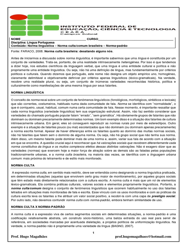 que o normal culto seja o normativo para a fala e para a escrita cultas? (FARACO, 2008, p. 85).