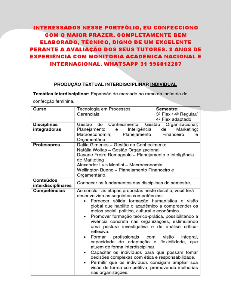 argumentativo trabalhados nas disciplinas de forma clara.