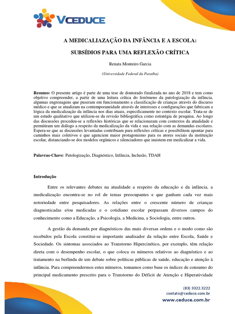 Ribeiro, Maria Izabel Souza A medicalização da educação na contramão das diretrizes