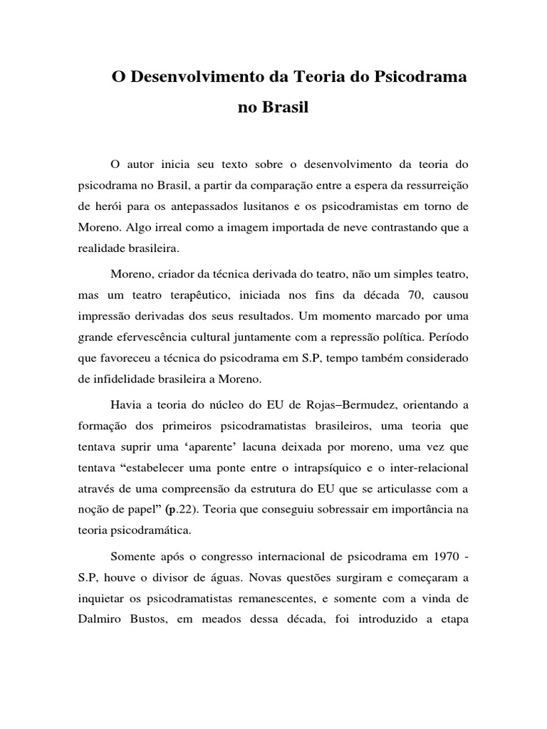 O Desenvolvimento da Teoria do Psicodrama
