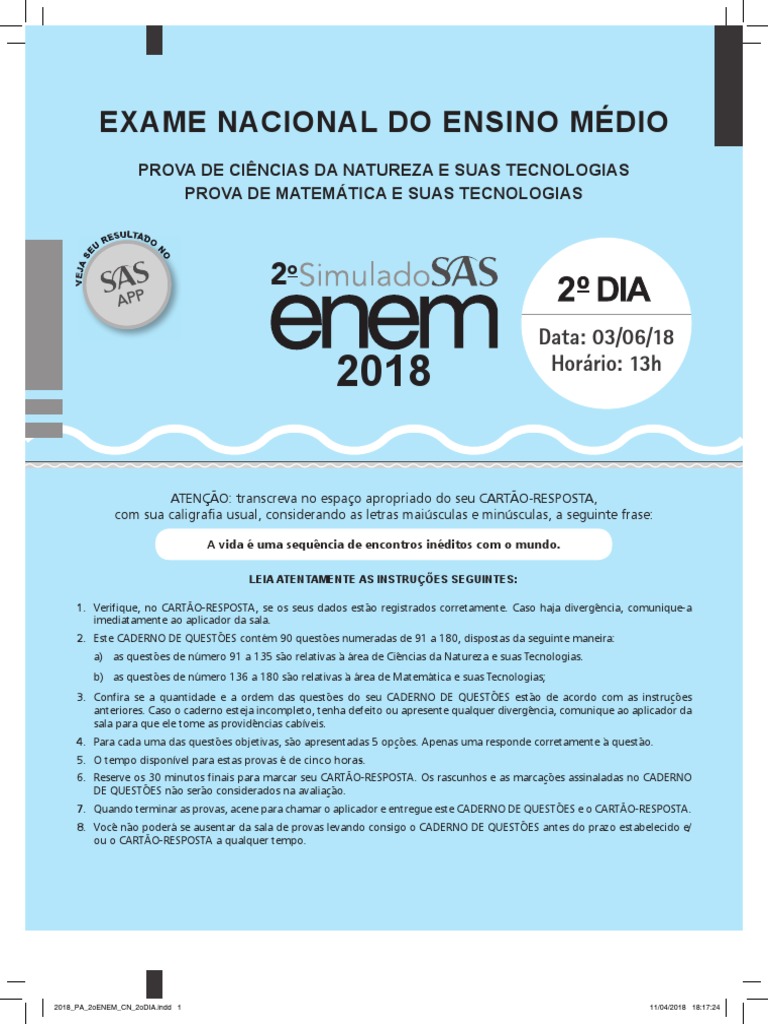 2018_PA_2oENEM_CN_2oDIA.indd 1 11/04/2018 18:17:24