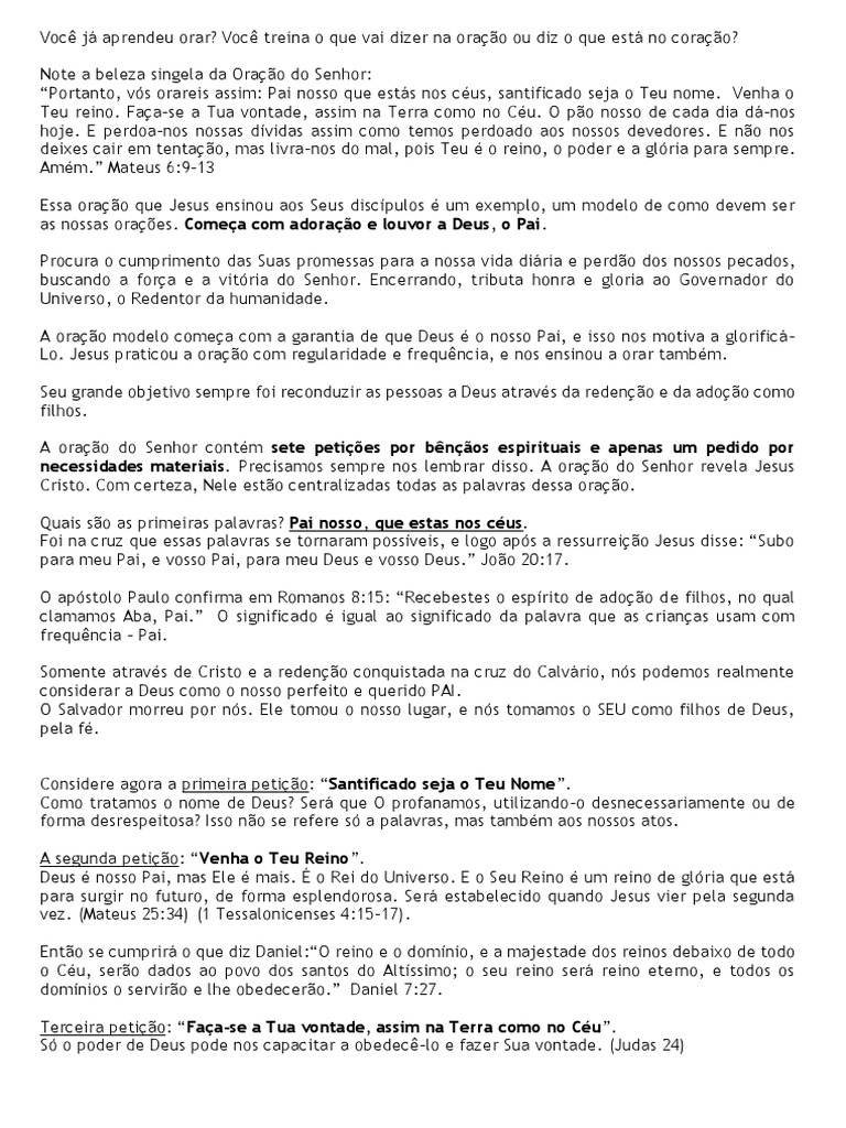 Essa oração que Jesus ensinou aos Seus discípulos é um exemplo, um modelo de como devem ser