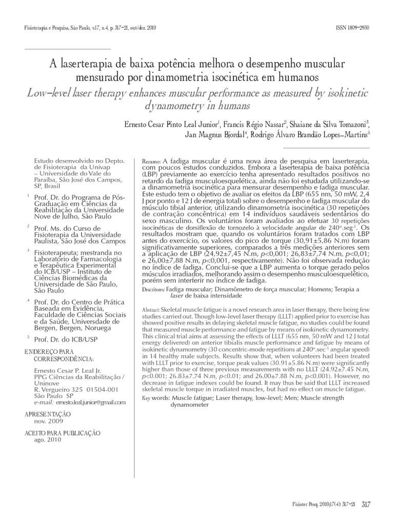 São Paulo SP Key words: Muscle fatigue; Laser therapy, low-level; Men; Muscle strength