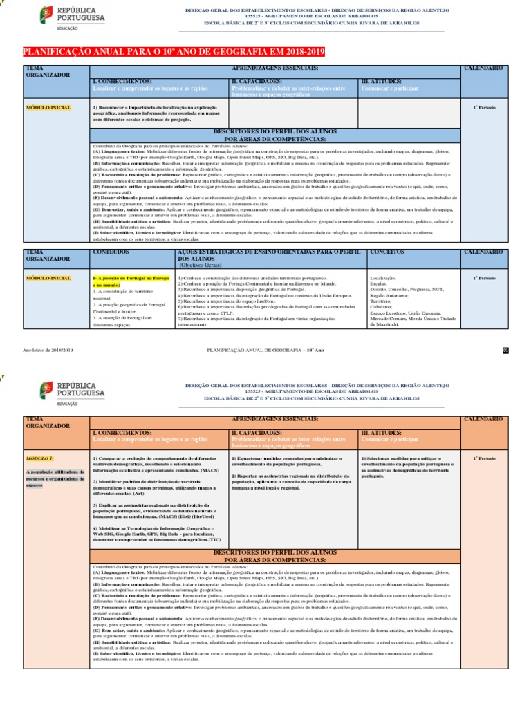 ORGANIZAÇÃO E LEITURA DA PLANIFICAÇÃO ANUAL PARA O 10º ANO DE GEOGRAFIA